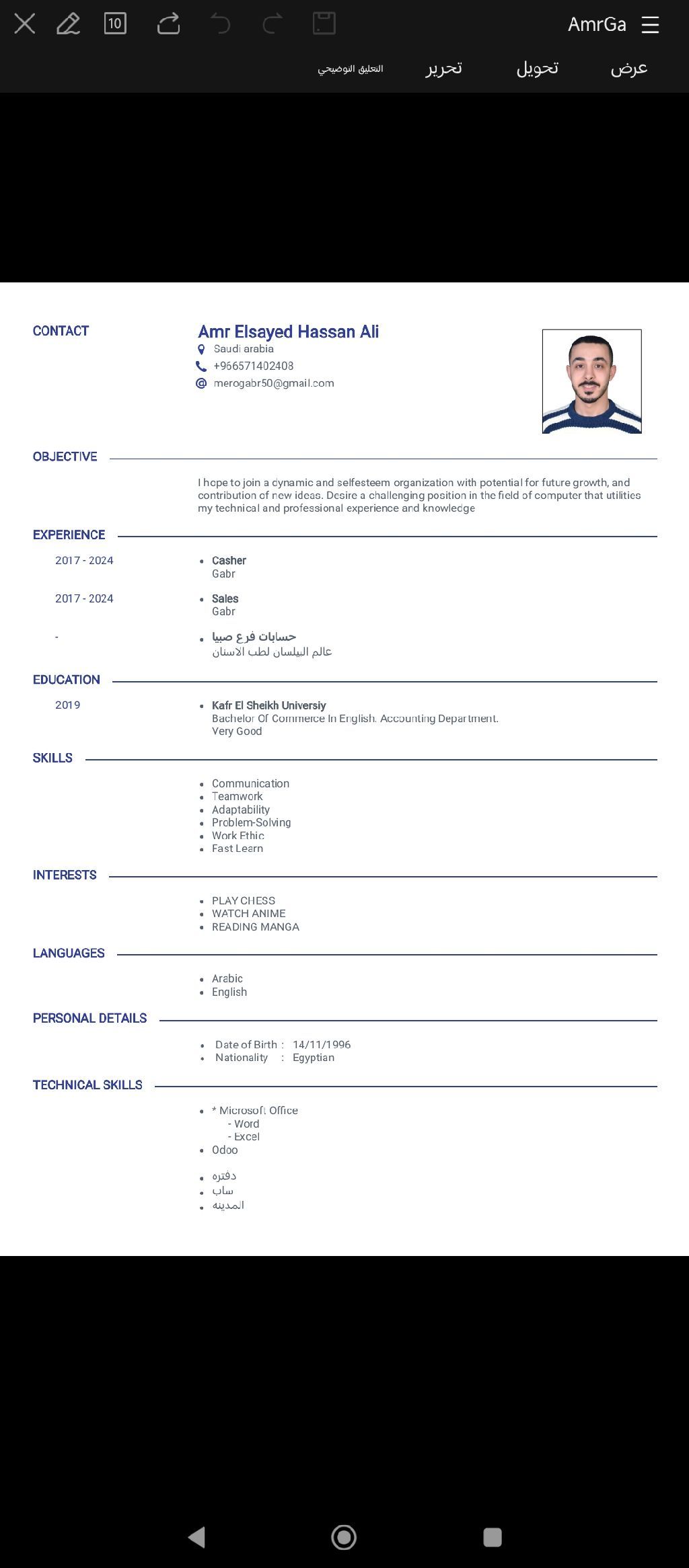 محاسب لسا واصل من مصر خبرة في التسجيل والتعامل مع أنظمة أل ERP SYSTEM وMicrosoft office