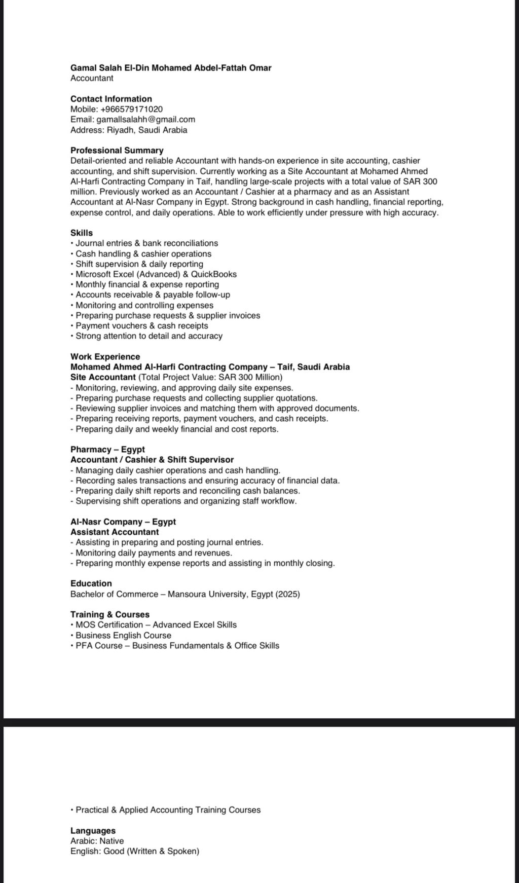 محاسب خبرة بالمحاسبة العامة ومحاسبة المواقع، قيود وتقارير مالية اجادة الأوفيس اقامة قابلة للتحويل، جاهز للعمل داخل السعودية