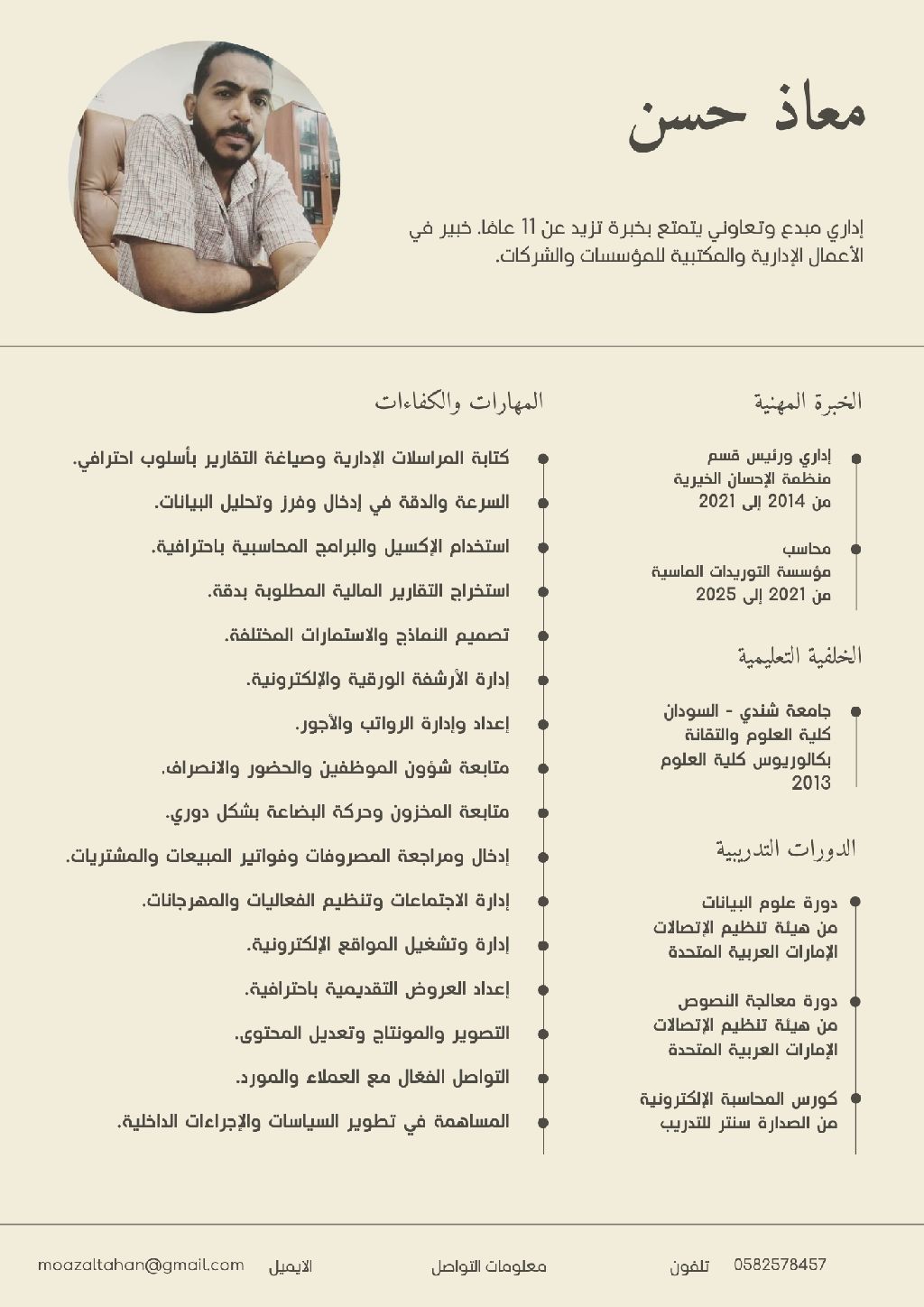 موظف بدوام جزئي أقوم بجميع الأعمال المكتبية والإشرافية خبرة في الادارة والمحاسبة خبرة في استخدام البرامج