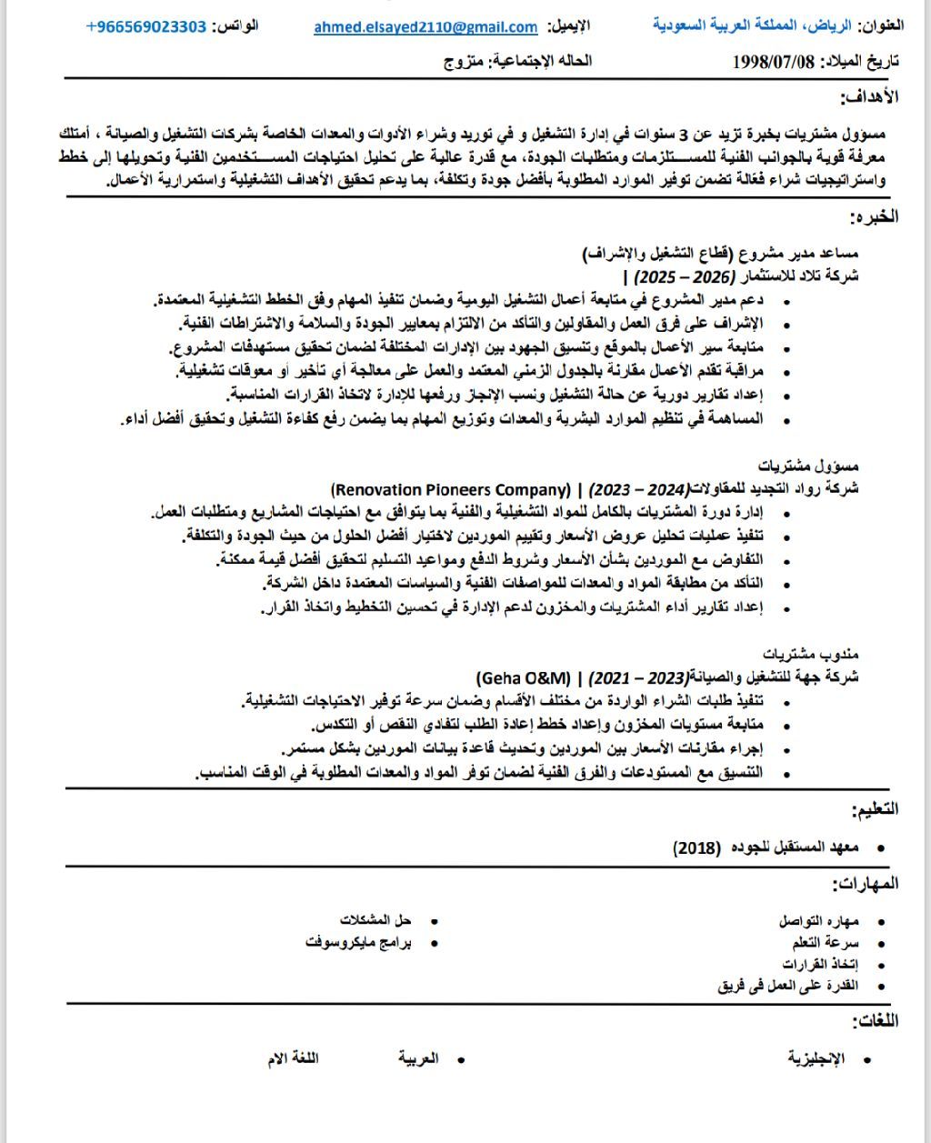 ابحث عن فرصة عمل خبرة أكثر من 3 سنوات في مجال التشغيل والصيانة في إدارة المشتريات وإدارة الحركة العمر 28 سنة