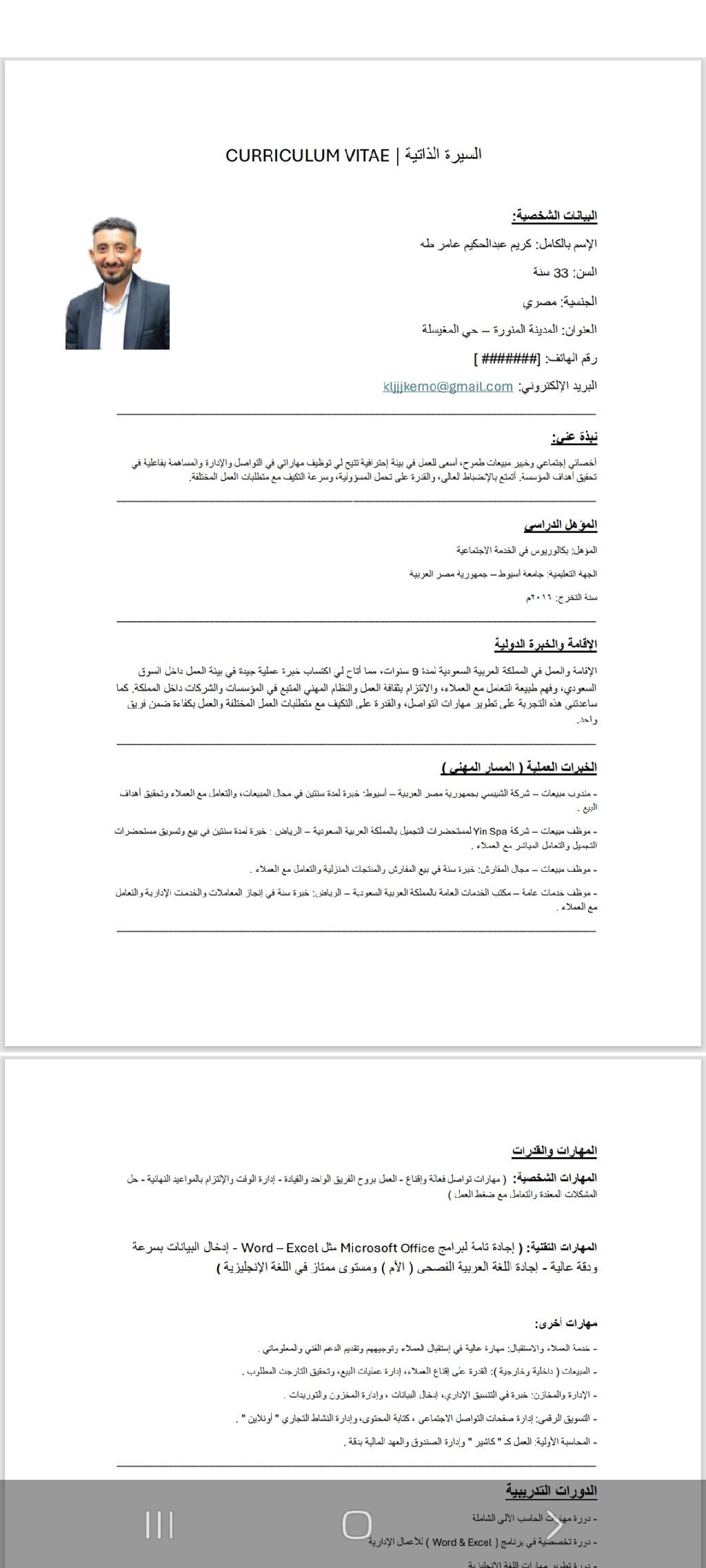 مصري 33 سنة مقيم في المدينة المنورة، أجيد التعامل مع الحاسب الآلي وادخال البيانات ممتاز في اللغة الانجليزية أقامه جديدة