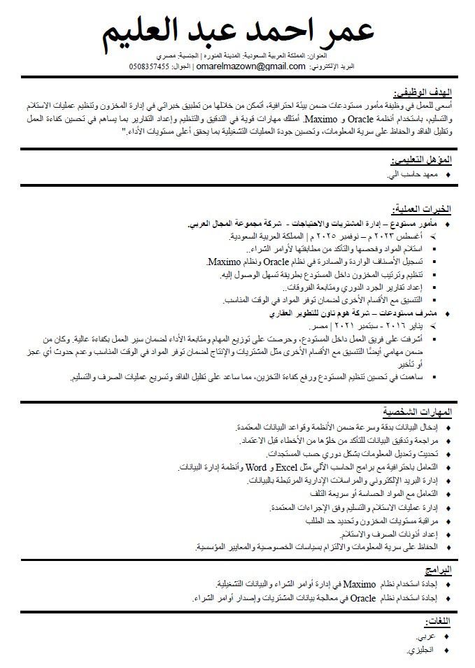 باحث عن عمل أمين مستودع خبرة في التنظيم والدقة