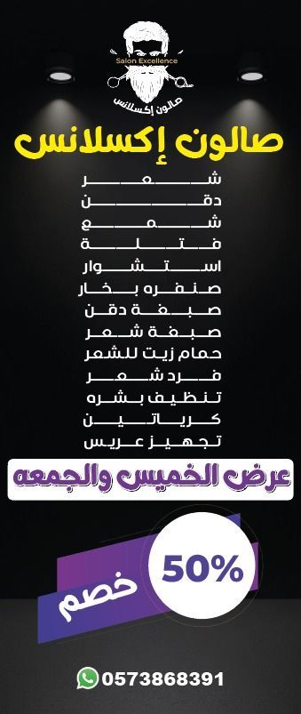 صالون اكسلانس مقابل توب سنتر بجوار مطبخ الرياض عرض الخميس والجمعة خصم 50%