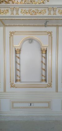 Interior decoration, gold leaf cladding, antiquing, plaster and wood molding, wood and furniture paints