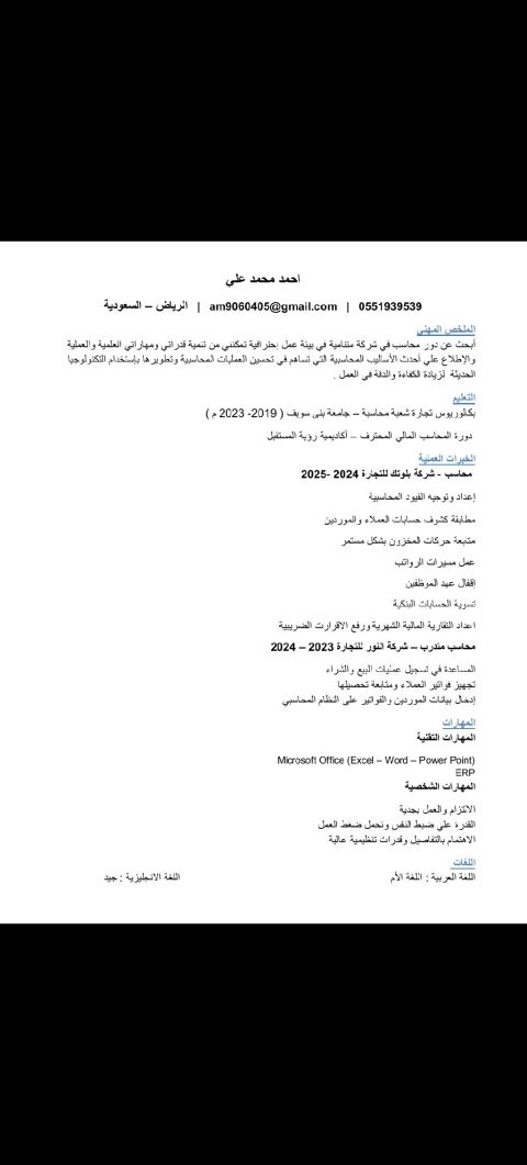 محاسب عام ابحث عن عمل لدي القدرة علي التعامل مع كافة البرامج المحاسبية وبرامج الأوفيس واعداد التقارير المالية والتسويات البنكية ومسيرات الرواتب ومتابعة العملاء والموردين ومتابعة المخزون وتقارير ضريبة القيمة المضافة