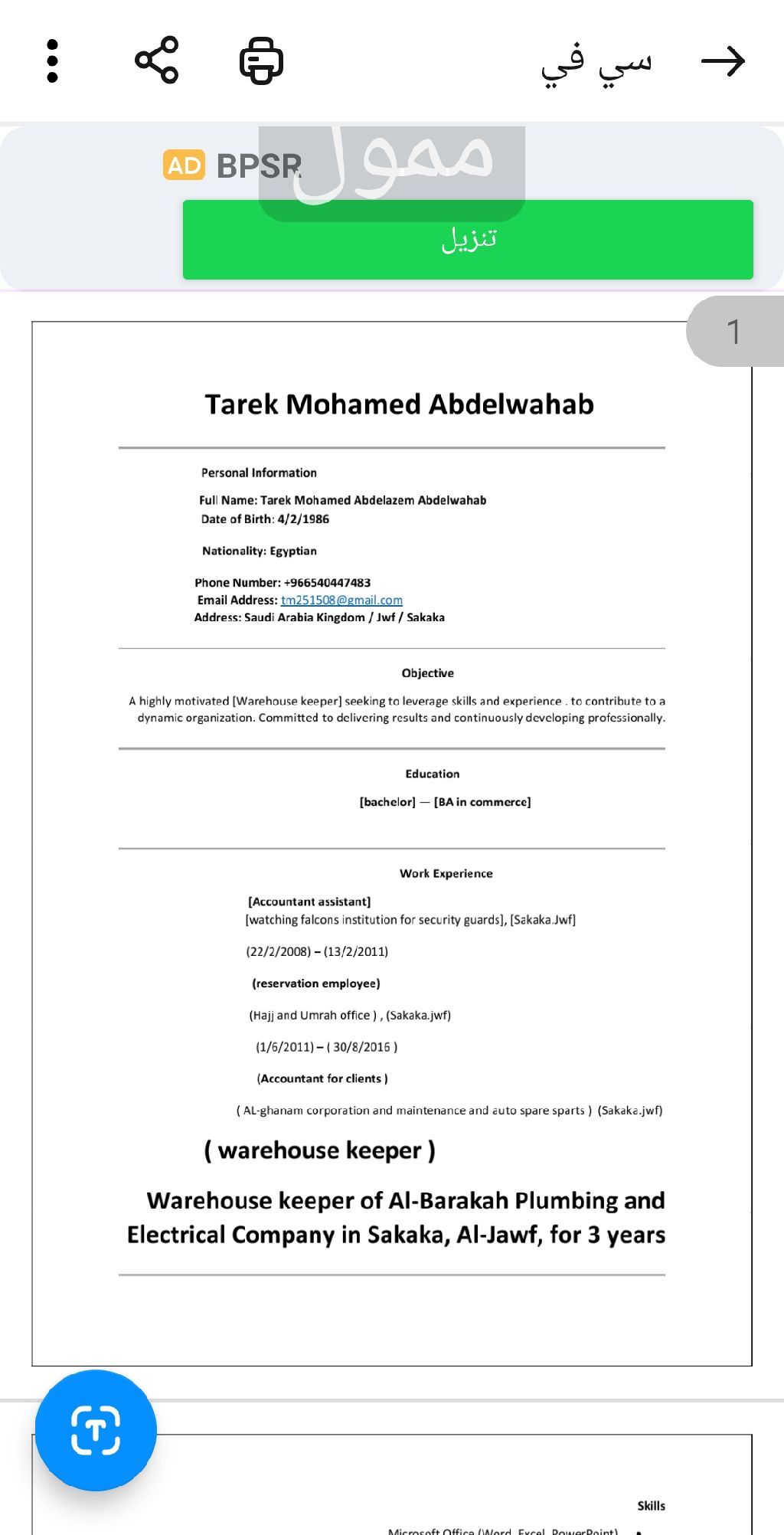 مصري لدي خبرة ثلاث سنوات في مجال السباكه والكهرباء حيث أني اشتغلت أمين مستودع لدى شركة كبرى ومتعلم ومعي الرخصة الدوليه بالحاسب الآلي أجيد الكتابة بالورود وأجيد برنامج الأكسيل وجميع معادلاته