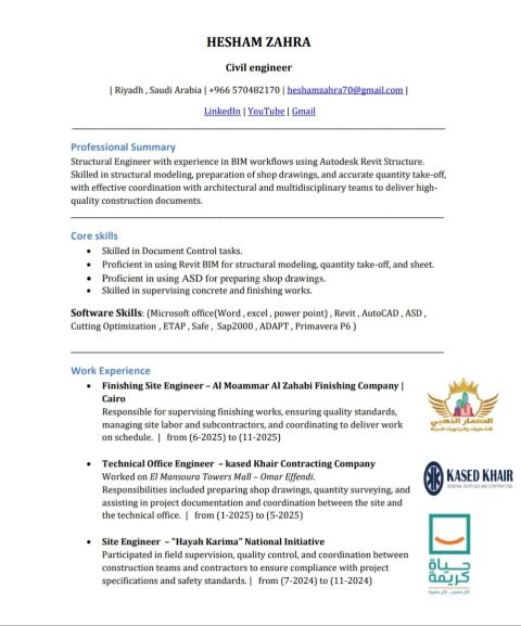 أنا هشام أشرف مهندس مدني ابحث عن فرصة في مجال التنفيذ أو المكتب الفني متواجد في الرياض