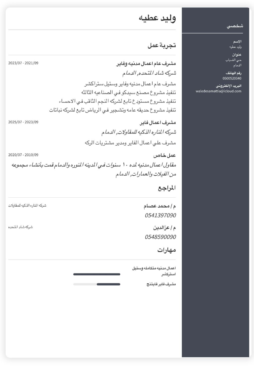 ابحث عن عمل مشرف أعمال مدنيه وأستيل استرا كشر وفاير فايتنج عندي معرفة بكل المخططات الانشائية والمعماريه وحساب الكميات واشتغل باتقان علي ميزان القامة والاوتوكاد عملت في شركة شاد المتحده 3 سنوات وفي شركة المنارة الذكيه سنتان وفي شركة النجم الثاقب 4 سنوات