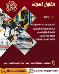 مقاولات كهرباء - أنظمة متكاملة بأعلى جودة نقدم خدماتنا المتخصصة في مجال المقاولات الكهربائية وأنظمة الحماية، بخبرة عالية وتنفيذ مطابق للمواصفات والمعايير أعمال الكهرباء للمباني تمديدات كهربائية كاملة (فلل - عمارات - محلات - مصانع) لوحات كهرباء وتوزيع - انارة داخلية وخارجية أنظمة كاميرات المراقبة (CCTV) توريد وتركيب أحدث الأنظمة - ربط ومتابعة عن بعد أنظمة انذار واطفاء الحريق