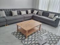 Detailing and upholstery of sofas, armrests, curtains and blankets