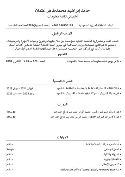 محاسب سوداني حديث التخرج، العمر 28 عملت محاسب في شركة رؤيا الأندلس لتشغيل الفنادق في المدينة المنورة لدي خبرة في نظام كومسس ونظام المه