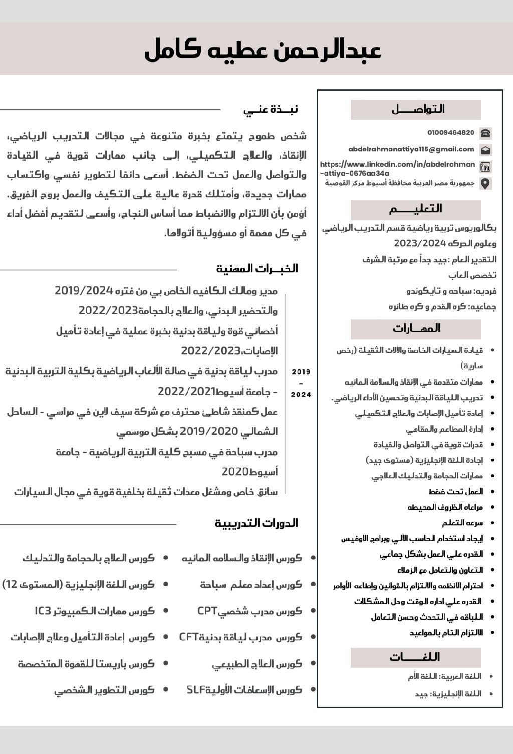 ابحث عن وظيفة (مدخل بيانات / شؤون اداريه) الاسم عبدالرحمن عطية. مصري الجنسية مقيم في المدينة المنورة حاصل علي بكالوريوس علوم رياضة ابحث عن فرصة عمل في مجال ادخال البيانات أو الشؤون الادارية داخل شركة أو مؤسسة اجادة تامة لاستخدام الحاسب الآلي وبرامج الأوفيس Microsoft Excel ادخال البيانات والتنظيم والتقارير