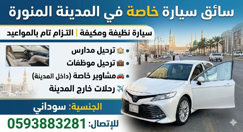 توصيل موظفات، طلاب جامعة، مدارس مشاوير خاصه داخل المدينة المنورة