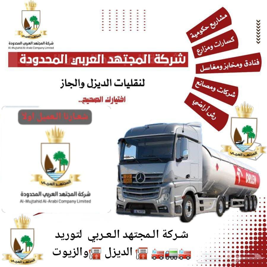شركة المجتهد العربي توريد ديزل لجميع مناطق المملكة سرعة في التنفيذ خدمة 24 ساعة توصيل ديزل