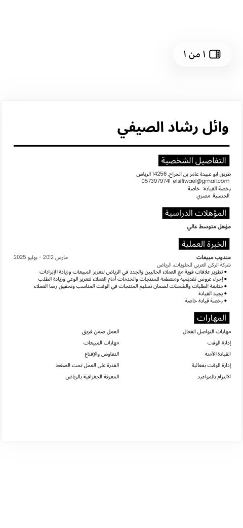 نبذة مختصرة عني اسمي (عمر فر غلي) العمر 30 عاما) الجنسية مصري) الصفات وهو أني انسان ذكي متعلم منضبط، سريع البديهة، صادق القول، قوي الشخصية، حافظ للأمانة، محب للنظافة بشكل عام، المظهر لائق، مقدر ومحب للمعاملة الحسنة، قادر على تحمل المسؤولية، حاصل على رخصة، سائق محترف، ملتزم بقواعد المرور العامة، أجيد قيادة جميع السيارات الحدثية، أجيد الحفاظ على السيارة ونظافتها ومتابعة الصيانات الدورية لها