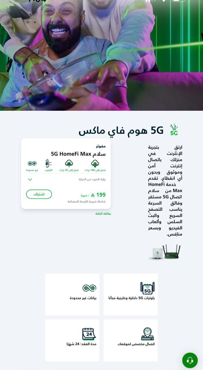 جهاز 5G للانترنت الجهاز مجاني والتركيب مجاني خلال 24 ساعة الى 72 ساعة مكون من جهازين راوتر وجهاز لاسلكي يلتقط الشبكة من أقرب برج اتصالات 5G. الشبكة ثابته ومستقره وقوية. خلال فترة التعاقد يوجد 3 أيام تجربة ومن حق المستخدم الغاء الخدمة واسترجاع المبلغ. سعر الجهاز 199 ريال