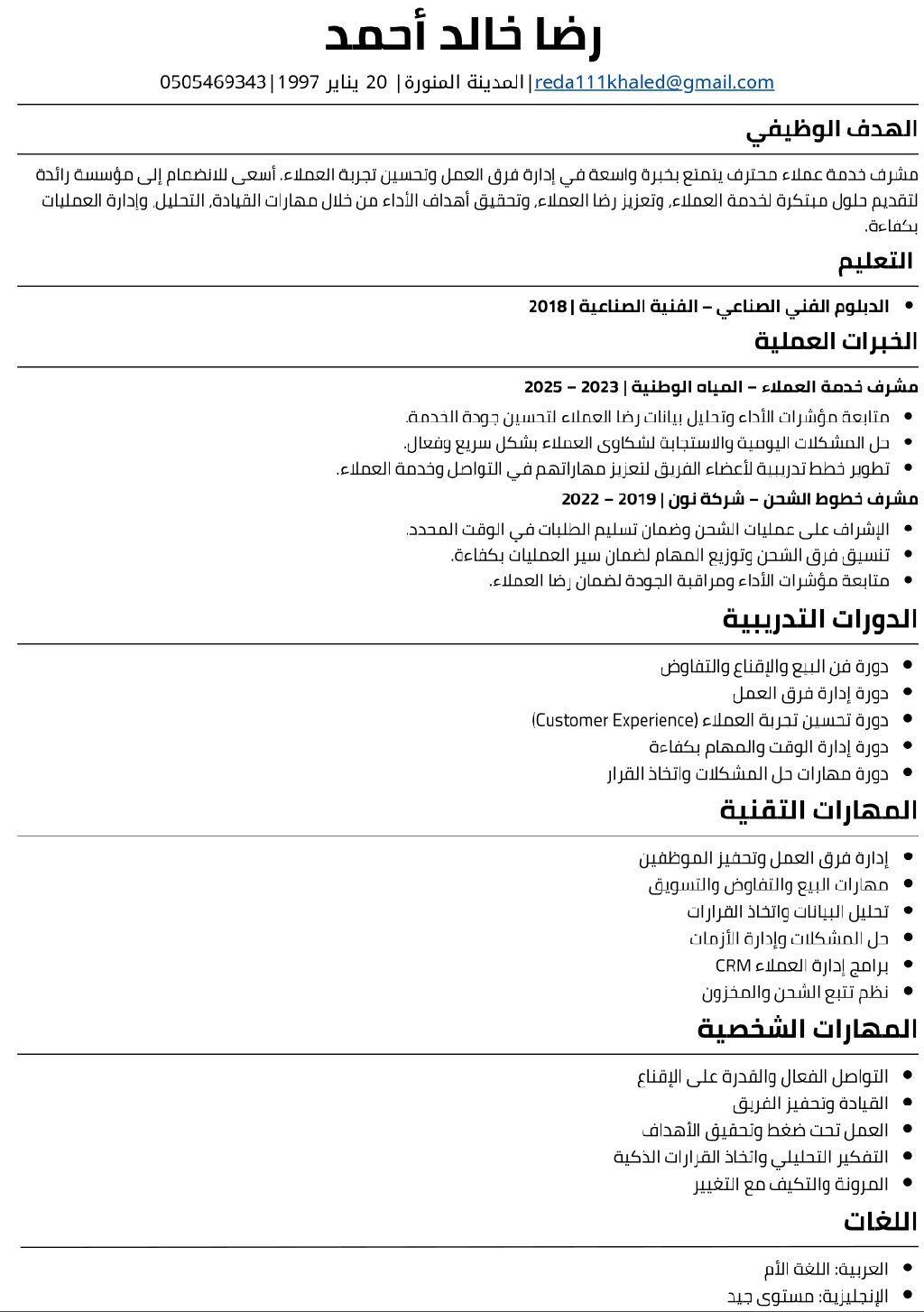 مشرف في متابعة العمل وحل المشاكل وخدمة العملاء