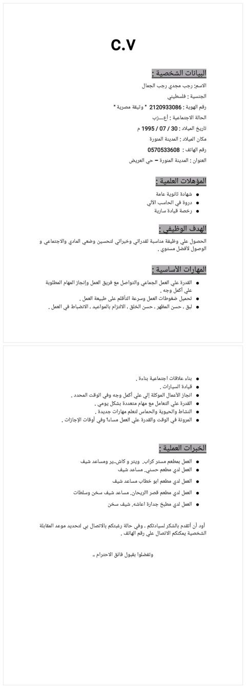 عبد الرحمن المنصور بكالوريوس تقنية معلومات، خبرات ادارية شؤون موظفين كاشير ادخال بيانات تسويق ومبيعات اشراف عمال جودة واتقان وتحمل ضغط العمل، إقامة ورخصة سارية
