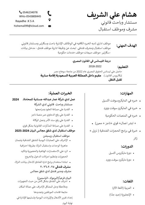ابحث عن وظيفة ادارية مشرف فندقي أو موظف استقبال جميع التفاصيل داخل أل CV