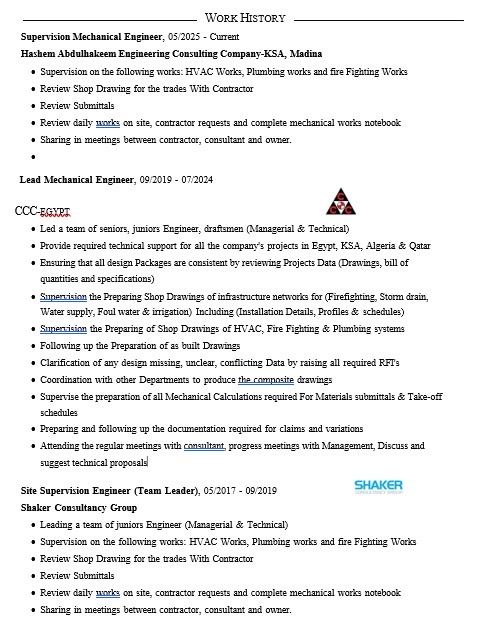 مهندس ميكانيكا خبرة + 15 سنة في المكتب الفني والتنفيذ في مجال MEP ابحث عن عمل في (المدينة المنورة فقط) خبرتي السابقة كانت في شركات مثل CCC EGYPT والمجموعة الاستشارية شاكر