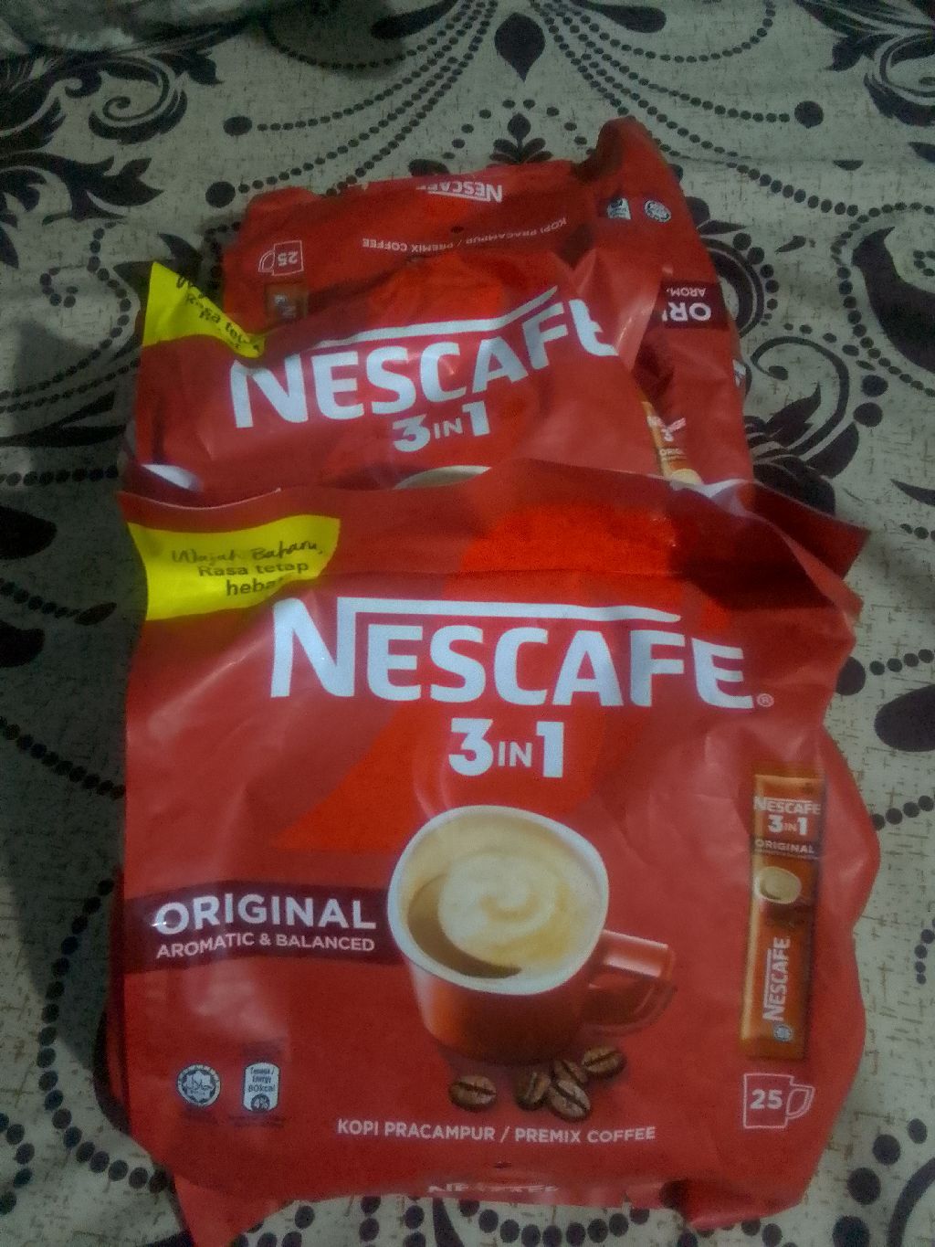 ثلاث أكياس نسكافيه ببيعهم سعر الكيس 20 ريال