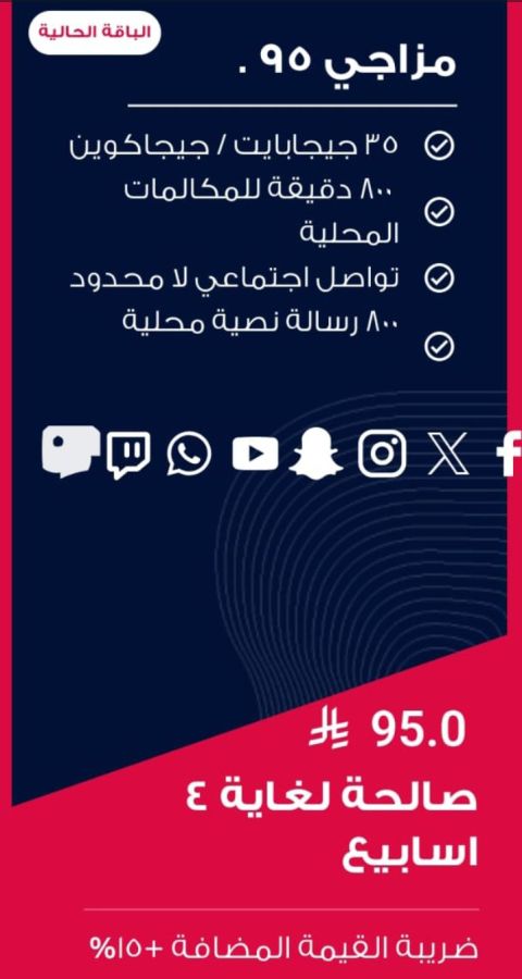 العرض الجبار 172 ريال شامل الضريبة بدلا من السعر الأساسي 287.5 لمدة 24 شهر سنتين يلا ألحق العرض قبل الانتهاء مستني إيه للاشتراك والاستفسار الرجاء التواصل علي رقمي واتساب واتصال