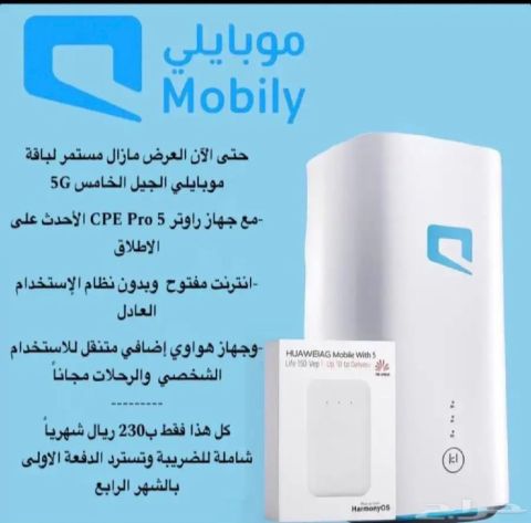 عرض حصري من شركة موبايلي علي باقة 200 الرسوم الشهريه 240 ريال بدل 287.5 ريال لمدة 12 شهر مع مود يم هواوي واير ليس هدية مجانيه مع المود يم ألحق استفيد من العرض