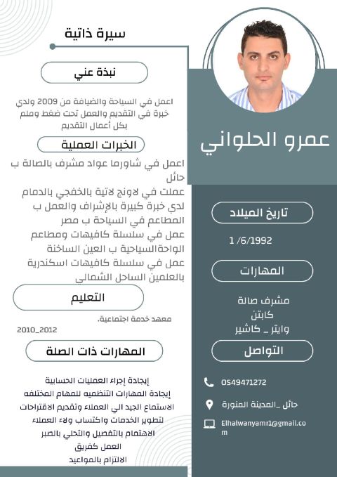 خبرة في مجال سوبر ماركت 4 سنوات ترتيب كاشر. خبرة مفي مجال العطارة جميع الأصناف سنة. خبرة في مجال المطاعم مباشر كاشر