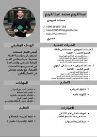 معاون تمريض خبرة 6 سنوات 5 عيادات خارجيه وسنة علاج طبيعي