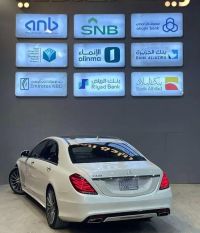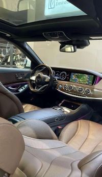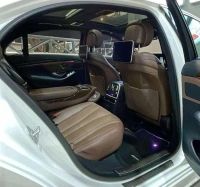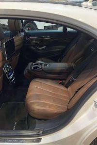 Mercedes S400, 2016 model, automatic transmission, fuel type: gasoline. Model year 2016. Odometer 126,000 km. Exterior color white. Interior color beige. Price 60,000. Key features: three-zone climate control, projector headlights, suction doors, panoramic roof, rear screens, front and rear sensors, 360-degree cameras, auto hold, cruise control, electric trunk, heated and cooled seats, electric seats, rear curtains.