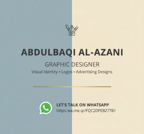 ابحث عن فرصة عمل أنا عبد الباقي العزاني مصمم جرافيك مختص في تطوير العلامات التجارية (Branding) المونتاج والموشن جرافيك الاحترافي. دقة في التنفيذ، وابداع يتحدث عنك. تواصل الآن