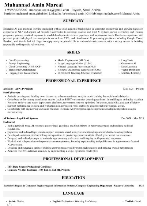 ابحث حاليا عن فرصة عمل في السعودية (أنا مقيم في السعوديوا) بمجال الذكاء الاصطناعي (AI / ML)