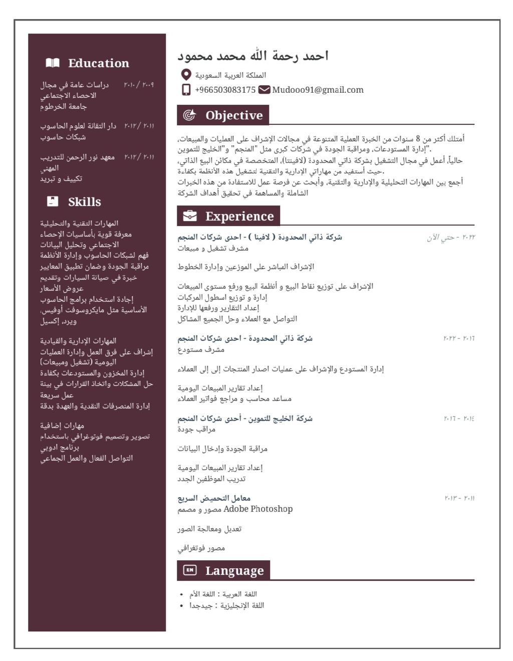 مشرف تغشيل ومبيعات وخبرة ادارة مستودعات وإدارة المصروفات العهدة النقدية والتواصل مع العملاء