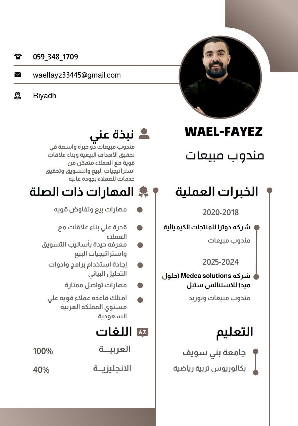 مصري الجنسية العمر 28 خبرة في مجال المبيعات والتسويق يوجد إقامة سارية ورخصة سعوديه وسيارة