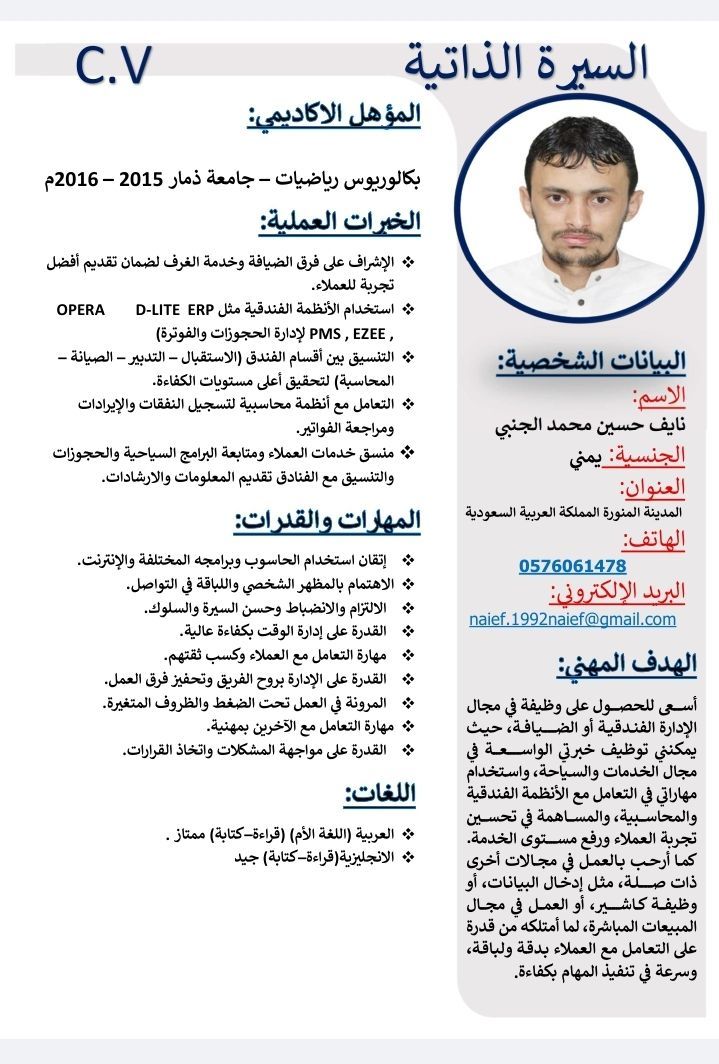 خبرة في مجال التسويق والعمل في الفنادق لمدة أربع سنوات الرغبة في حصول على فرصة عمل في مجال مدخل البيانات أو كاشير