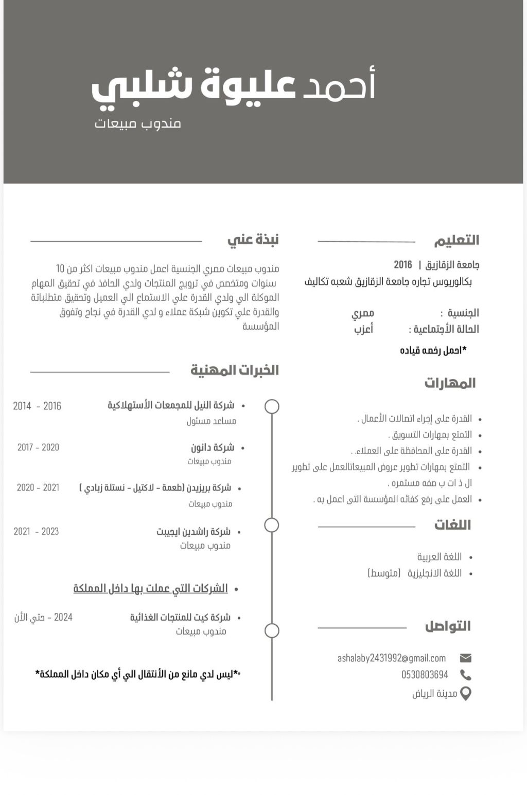 مندوب مبيعات اعمل دائما علي رفع كفاءة المؤسسة ورفع روح الفريق وجاب عملاء جدد وايجاد حلول للعملاء واسكتشاف دائما للمنافسين وجلب ثقة العملاء