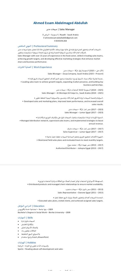 طلب وظيفة مدير مبيعات خبرة 15 عاما في مجال المبيعات لدى كبرى الشركات في الزبادي والعصائر والمكسرات والقهوة والحبوب والكوزمتكس، ابحث عن فرصة عمل كمدير مبيعات للمساهمة بخبرتي في تحقيق أهداف الشركة وتطوير فريق المبيعات