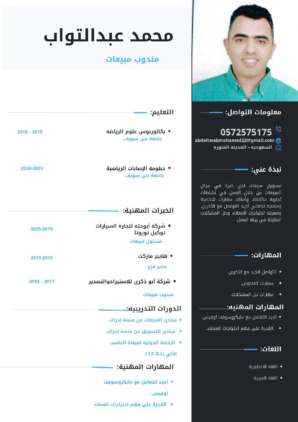 مندوب مبيعات مصري ابحث عن عمل لدى خبرة في شركات السيارات أو مجال منتجات الهايير ماركت