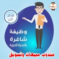 مطلوب مندوبين تسويق في المدينة المنورة يشترط وجود سيارة ورخصة قيادة للعمل في مجال التوزيع للمواد الغذائية والحلويات في المدينة المنورة شارع الأمير عبد المجيد (الحزام سابقا)