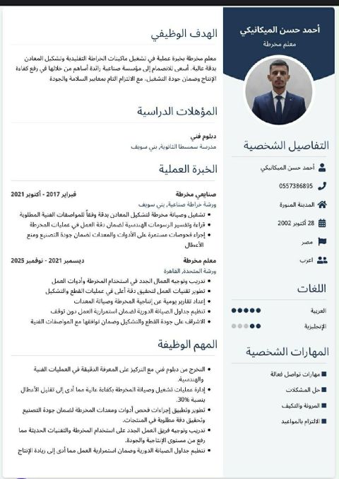 ابحث عن فرصة عمل فني مخرطة وميكانيكي جرارات زراعية