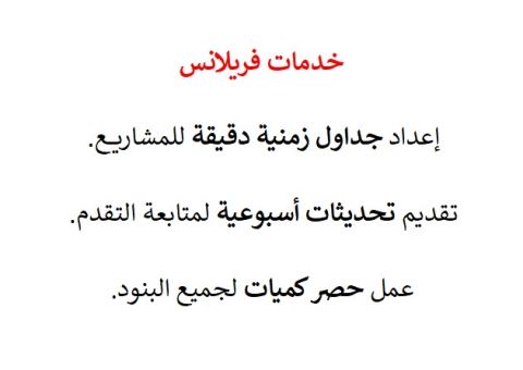 مكتبك الفني موجود من غير توظيف خدمات فري لانس للشركات والمقاولين عن بعد (حصر كميات دقيق ومنظم لجميع البنود الانشائية والمعمارية - عمل الجداول الزمنية للمشروعات المختلفة - متابعة وتحديث الجداول الزمنية - عمل التقارير اللازمة علي مدار المشروع - أي أعمال تخص المكتب الفني) التزام كامل بالمواعيد خبرة في التعامل مع المشاريع المختلفة وفر وقتك ومجهودك، وخليني أساعدك تنجز شغلك بأعلى كفاءة