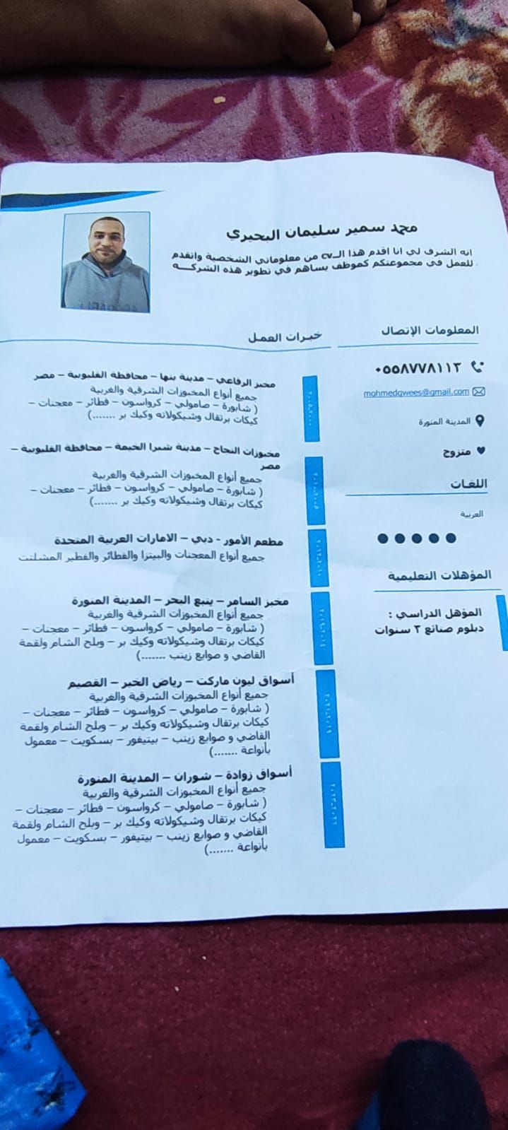 أنا شيف مخبوزات ومعجنات وبيتزا وفطر وصمول كرواسون وشبرا معمول التمر وبد فور وبسكويت وغريبه خبز بر وأبيض كل شيء في مخبوزات أنا موجود في المدينة المنورة ابغه شغل إن شاء الله التوفيق آل من عند الله