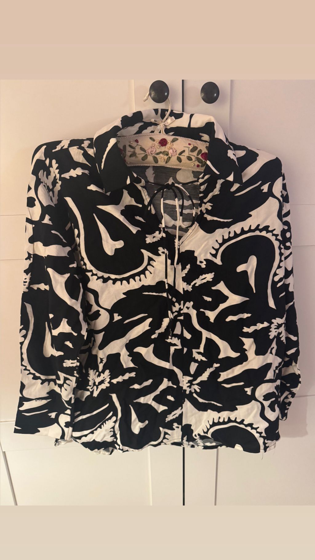 بلوزة رسمية فخمة للدوامات، مقاس Large، اللون أبيض وأسود، القماش ممتاز والموديل أنيق. حالة القطعة جديدة تماما ولم تستخدم 30 ريال