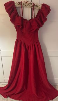 Elegant red dress with ruffle detail on the shoulder Size Lash Price Only 35 SAR Special Offer Limited Stock