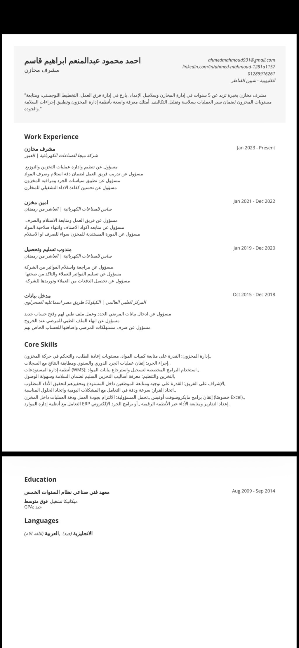 ابحث عن وظيفة مسؤول مستودع أو مدخل بيانات مقيم في القصيم - بريدة خبرة 5 سنوات في ادارة المستودعات وخبرة سنتين في ادخال البيانات خبرة في برامج الأوفيس (وورد - أكسيل) خبرة في برنامج المتكامل ERP معي إقامة سارية وجاهز للنقل أول مرة فورا ومعي مؤهل فوق متوسط