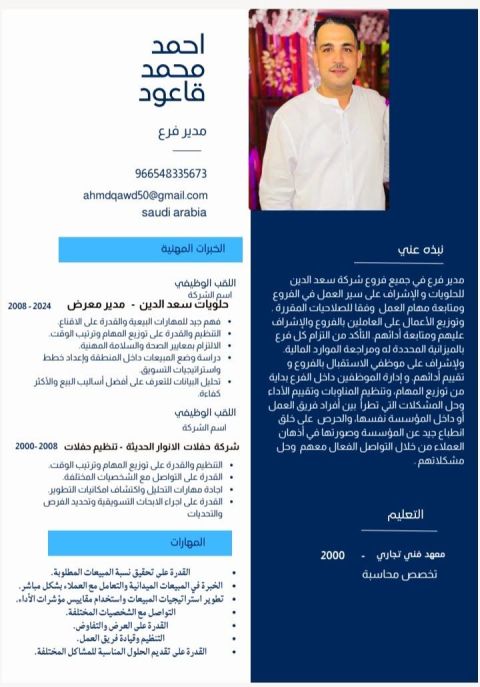مدير تشغيل سلسلة مطاعم خبرة 11 سنة حاليا متفرغ بسبب ازالة في الموقع
