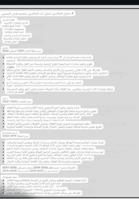 محمد أبو سعود مدير فرع بخبرة تزيد عن سنتين في إدارة وتشغيل الفروع وتحقيق نمو ملحوظ في المبيعات وتحسين تجربة العملاء. امتلك سجلا مثبتا في تطوير الفرق، رفع كفاءة العمليات التشغيلية، وتحقيق أهداف الشركة بكفاءة واستدامة. الانجازات الرئيسية رفع المبيعات بنسبة 18 خلال عام واحد من خلال تحسين الأداء البيعي وتفعيل خطط تسويقية داخل الفرع. زيادة متوسط تقييم العملاء الى 4.7 من 5 عبر تطوير تجربة العميل