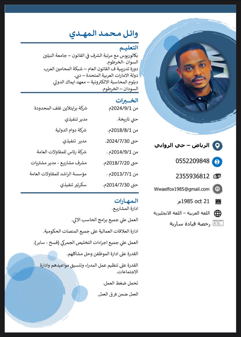 سوداني خريج بكالويوس قانون ابحث عن عمل بوظيفة مساعد اداري أو سكرتير تنفيذي أو سكرتير محامي في الرياض أو القصيم يتوفر رخصة قيادة وسيارة