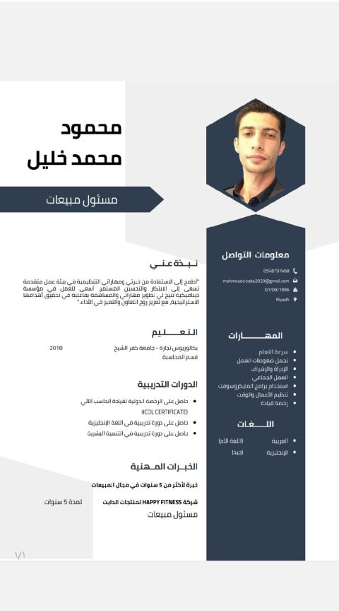 متخرج من بكالوريوس ادارة الأعمال بالاضافة ل ماجستير في التسويق خبرة واسعه في رفع الاقرارات الضريبة والاسترداد ألضربيي بالنسبة للشركات العقاريه والتطوير العقاري الخبرة الأكثر مدير حركة وتشغيل في الشركات اللوجستية شركات تقديم خدمات الطعام ملم ببرامج الا وفس وبرامج غوغل وعمل الداش بورد للتقارير وخبرة في التطبيقات جاهز نينجا وتويوا مرسول وغيرها خبرة متوسطه في المحاسبة