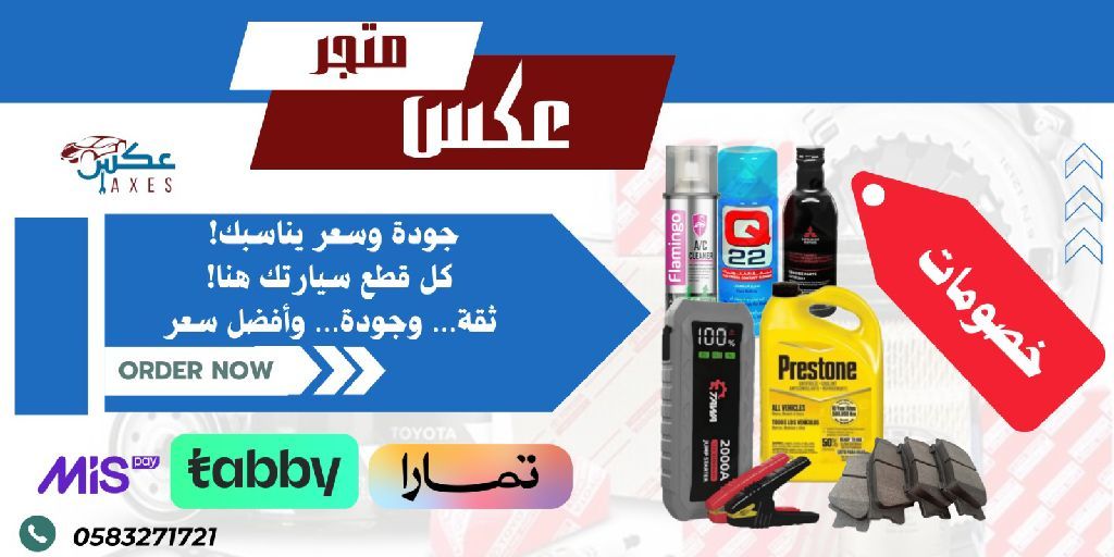 مؤسسة عكس لقطع غيار السيارات وجهتك الأولى لقطع الغيار الأصلية والبديلة الموثوقة عروض مميزة وتقسيط مريح مع تمارا - تابي - ميس بأي - مدفوع - تمارا متاحة حتى 12 دفعة بدون فوائد اشتر الآن واستمتع بتجربة شراء سهلة وسريعة قطع غيار لجميع أنواع السيارات بأسعار منافسة توصيل سريع جودة مضمونة - خيارات دفع متعددة مؤسسة عكس لقطع غيار السيارات للتواصل والاستفسار